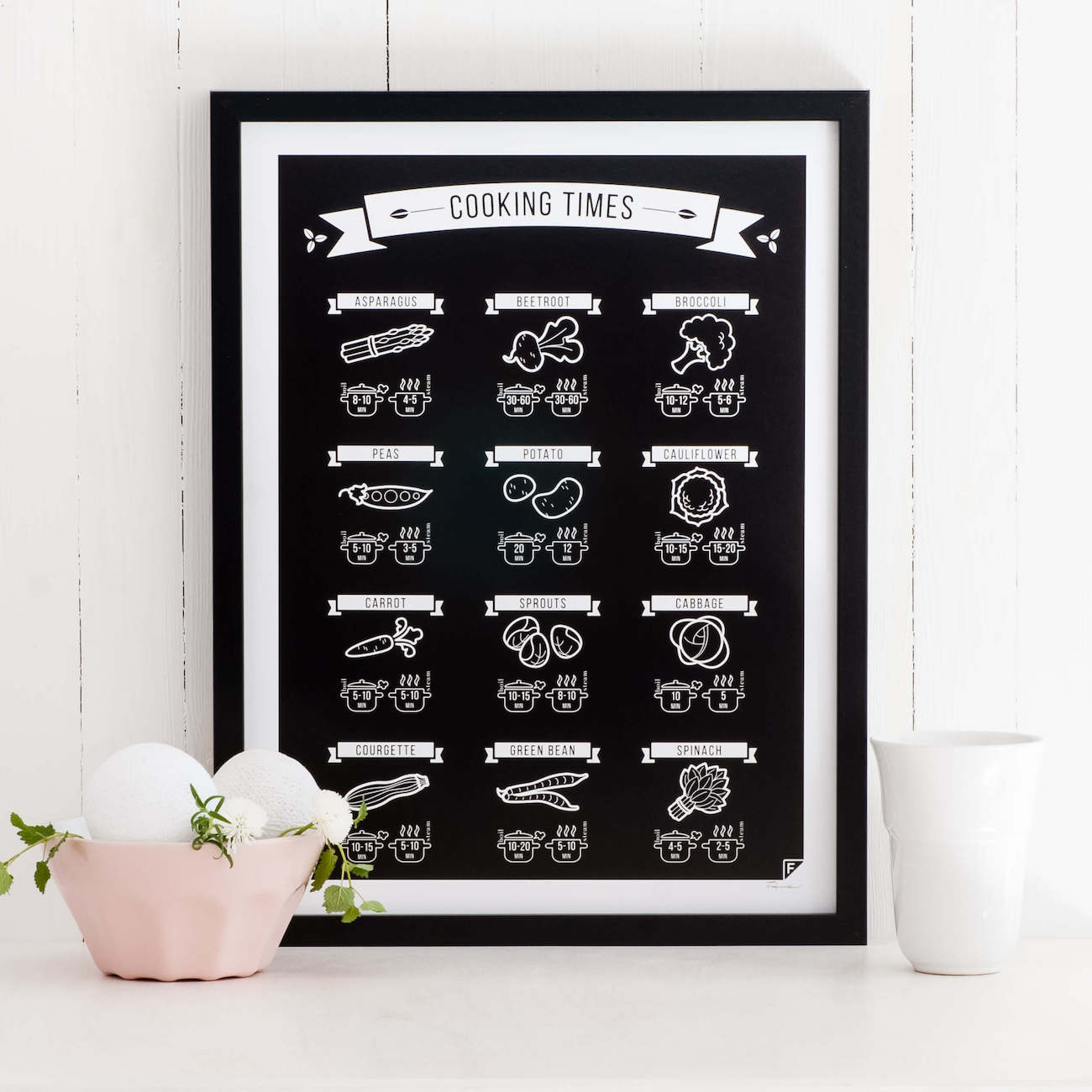 To nie tylko tabela gotowania warzyw, ale także stylowa dekoracja do kuchni.