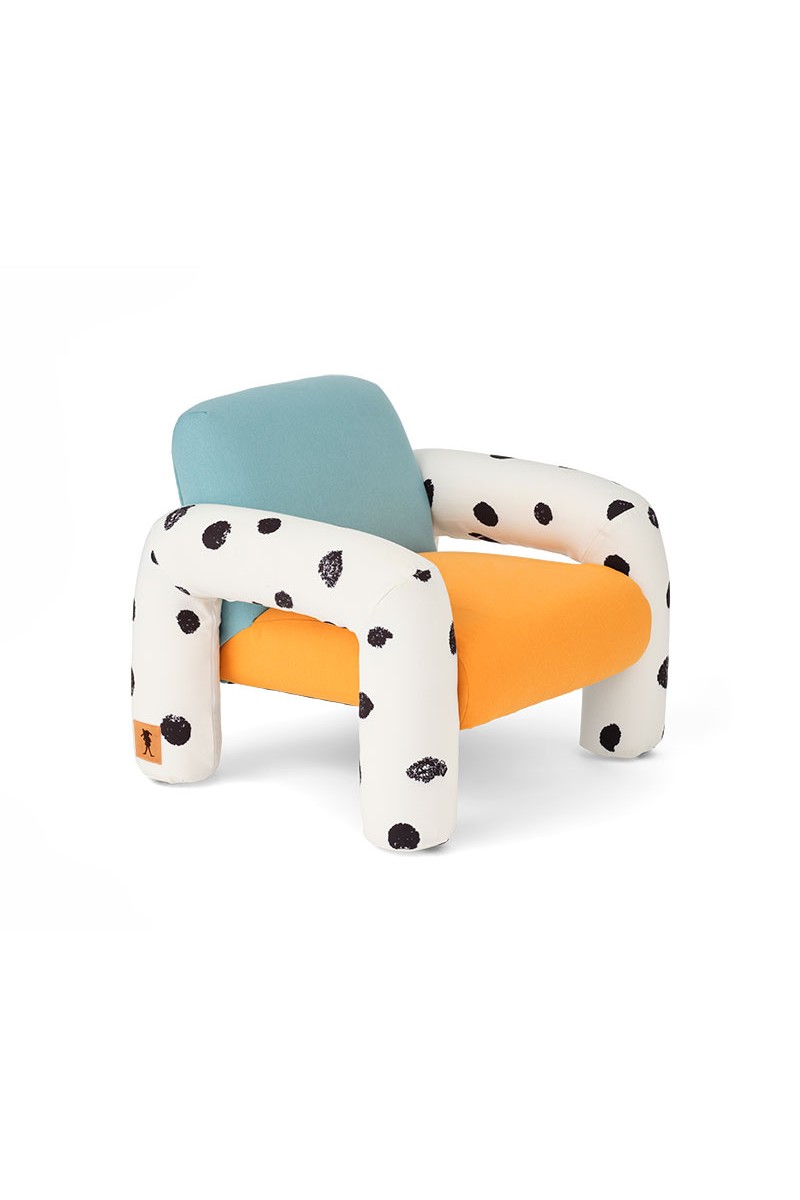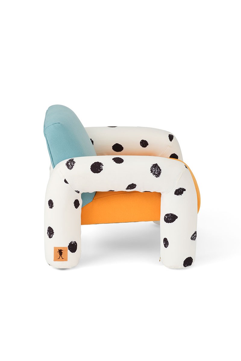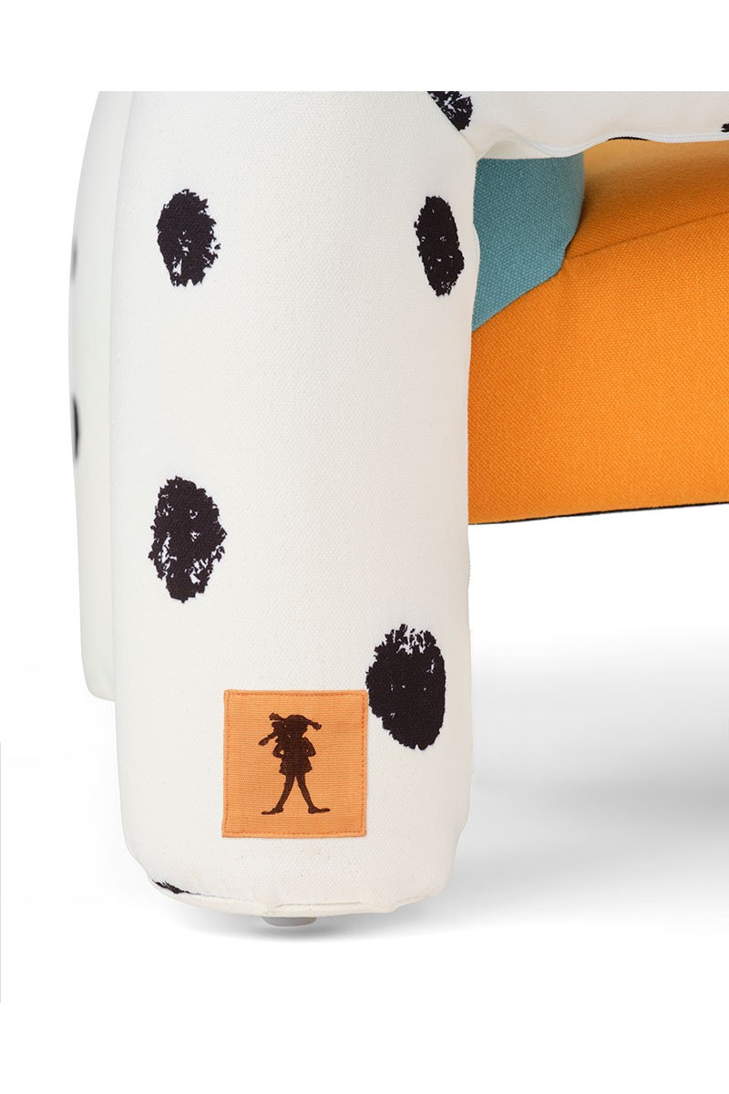 Nieustraszona postawa Pippi Długoskarpetki zamienia zwykłe chwile w niezwykłą przygodę, a ten fotel wnosi do domu odrobinę tego radosnego ducha. Tapicerowany miękką w dotyku tkaniną, posiada wzór w kropki inspirowany koniem Pippi – wiernym towarzyszem jej szalonych pomysłów. To mebel z charakterem, idealny dla każdego, kto tak jak Pippi uważa, że zawsze warto próbować nowych rzeczy.