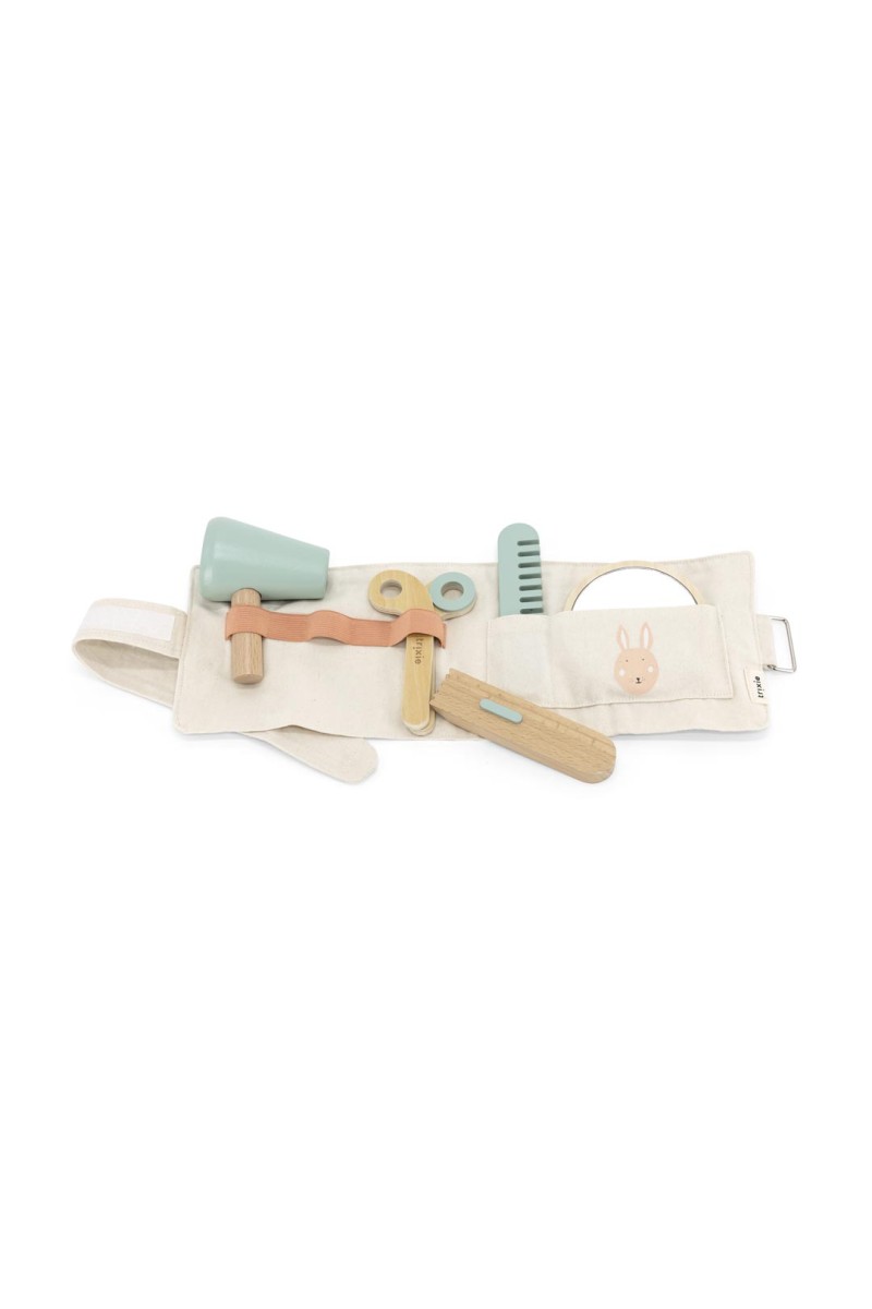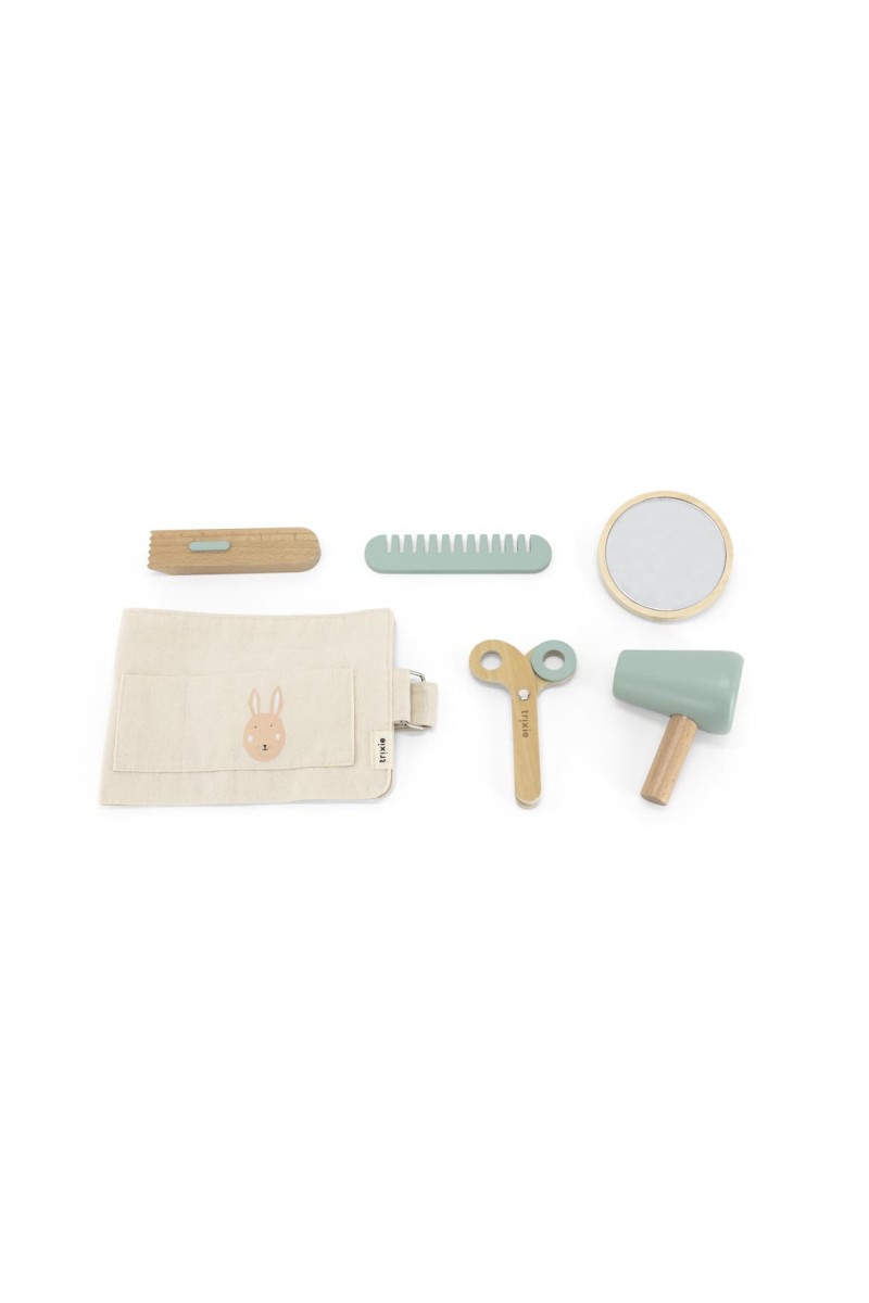 Czas na małą metamorfozę! Drewniany zestaw fryzjerski Trixie Baby pozwala dzieciom wcielać się w rolę stylistów, tworzyć nowe fryzury i ćwiczyć kreatywność. Zestaw zawiera wszystkie niezbędne „narzędzia”: nożyczki, grzebień, suszarkę, maszynkę do golenia, lusterko oraz wygodny, materiałowy pas, który można założyć na biodra. Dzięki temu każdy mały fryzjer ma swoje akcesoria zawsze pod ręką.