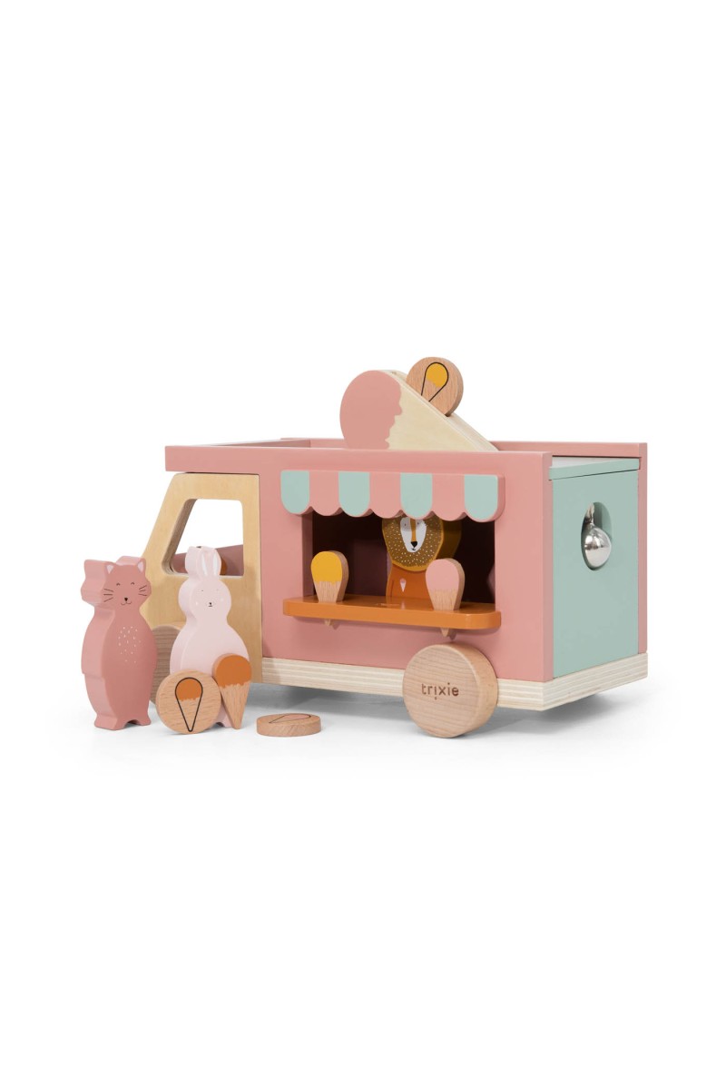 Szybko, złap lodziarkę! Nasłuchuj dzwonka i ustaw się w kolejce razem ze swoimi zwierzęcymi przyjaciółmi — dla każdego jest smakołyk, a pan Lew jest gotowy, by podać pyszne lody, gdy wrzucisz monetę do szczeliny.